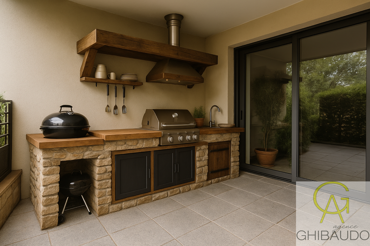 Luynes. Dans une résidence récente et fermée à 5 minutes en voiture de l'Hôpital Privé de Provence, nous vous présentons à la vente un appartement de type 2 situé au rez de chaussée sans aucun vis à vis. Commerces du village à 1km et arrêts de bus devant la résidence. Il se compose d'une entrée avec placard distribuant une salle d'eau avec WC, une chambre avec dressing puis un salon avec cuisine américaine moderne et entièrement équipée. Une terrasse au calme absolu de 27 m2 sur laquelle on pourrait envisager une cuisine d'été (voir image de synthèse cf) puisque la moitié est totalement couverte. Chauffage par air pulsé gainé et rafraichissant, volets électriques, énergie A. Appartement trés bien équipé et trés bien entretenu. Possibilité d'acquérir un box fermé en sous-sol. Les informations sur les risques auxquels ce bien est exposé sont disponibles sur le site géorisque (www.georisque.gouv) Le prix est de 229 500 € Honoraires à la charge du vendeur.
