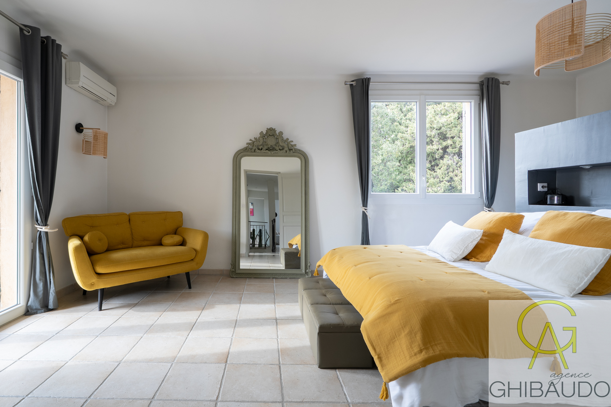 Bien d'exception à Luynes. En exclusivité au coeur du village de LUYNES l'agence GHIBAUDO vous présente à la vente une belle demeure qui conjugue avec justesse le cachet d'une bastide provençale et un intérieur contemporain. Implantée sur une parcelle paysager de 926 m2, sa surface de 172 m2 offre un art de vivre à l'abri des regards, dans un environnement intime. Dés l'entrée, un vaste sas vitré ouvre la perspective vers l'exterieur et baigne les espaces de lumière. Le séjour, chaleureux et élégant jouxte une cuisine indépendante mais non cloisonnée, structurée autour d'un îlot central pensé pour les instants de convivialité. Dans son prolongement, une grande salle à manger accueille aisément les diners en famille. À l'étage, l'escalier mène à un espace nuit parfaitement didtribué. La suite parentale avec sa salle d'eau attenante s'ouvre sur une terrasse exposée plein ouest offrant une vue dégagée. Un dressing, un bureau, deux chambres ainsi qu'une salle de bains complètent ce niveau avec cohérence et confort. À l'extérieur, le jardin clos et soigneusement structuré propose une terrasse d'été couverte, une piscine traditionnelle et son pool house puis un boulodrome. Un T2 indépendant idéal pour recevoir, loger un proche ou envisager un usage locatif discret. Une propriété confidentielle, entretenue avec exigence qui séduira les acquéreurs en quête d'un lieu singulier alliant emplacement premium et prestations de qualité. Les informations sur les risques auxquel ce bien est exposé sont disponibles sur le site géorisque (www.georisque.gouv.fr) Son prix: 1 215 000 € honoraires à la charge du vendeur