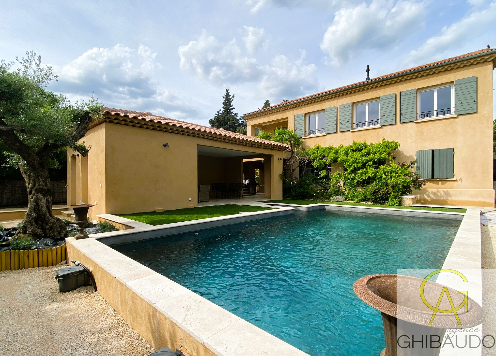 Bien d'exception à Luynes. En exclusivité au coeur du village de LUYNES l'agence GHIBAUDO vous présente à la vente une belle demeure qui conjugue avec justesse le cachet d'une bastide provençale et un intérieur contemporain. Implantée sur une parcelle paysager de 926 m2, sa surface de 172 m2 offre un art de vivre à l'abri des regards, dans un environnement intime. Dés l'entrée, un vaste sas vitré ouvre la perspective vers l'exterieur et baigne les espaces de lumière. Le séjour, chaleureux et élégant jouxte une cuisine indépendante mais non cloisonnée, structurée autour d'un îlot central pensé pour les instants de convivialité. Dans son prolongement, une grande salle à manger accueille aisément les diners en famille. À l'étage, l'escalier mène à un espace nuit parfaitement didtribué. La suite parentale avec sa salle d'eau attenante s'ouvre sur une terrasse exposée plein ouest offrant une vue dégagée. Un dressing, un bureau, deux chambres ainsi qu'une salle de bains complètent ce niveau avec cohérence et confort. À l'extérieur, le jardin clos et soigneusement structuré propose une terrasse d'été couverte, une piscine traditionnelle et son pool house puis un boulodrome. Un T2 indépendant idéal pour recevoir, loger un proche ou envisager un usage locatif discret. Une propriété confidentielle, entretenue avec exigence qui séduira les acquéreurs en quête d'un lieu singulier alliant emplacement premium et prestations de qualité. Les informations sur les risques auxquel ce bien est exposé sont disponibles sur le site géorisque (www.georisque.gouv.fr) Son prix: 1 215 000 € honoraires à la charge du vendeur